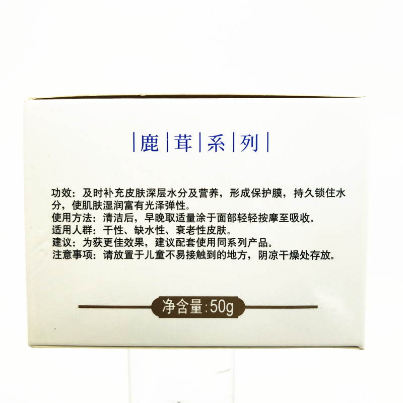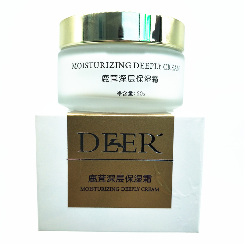 鹿茸深层保湿霜 主要成人: 鹿茸SOD复合酶、透明质酸、VA、VE、鹿茸胶原蛋白。