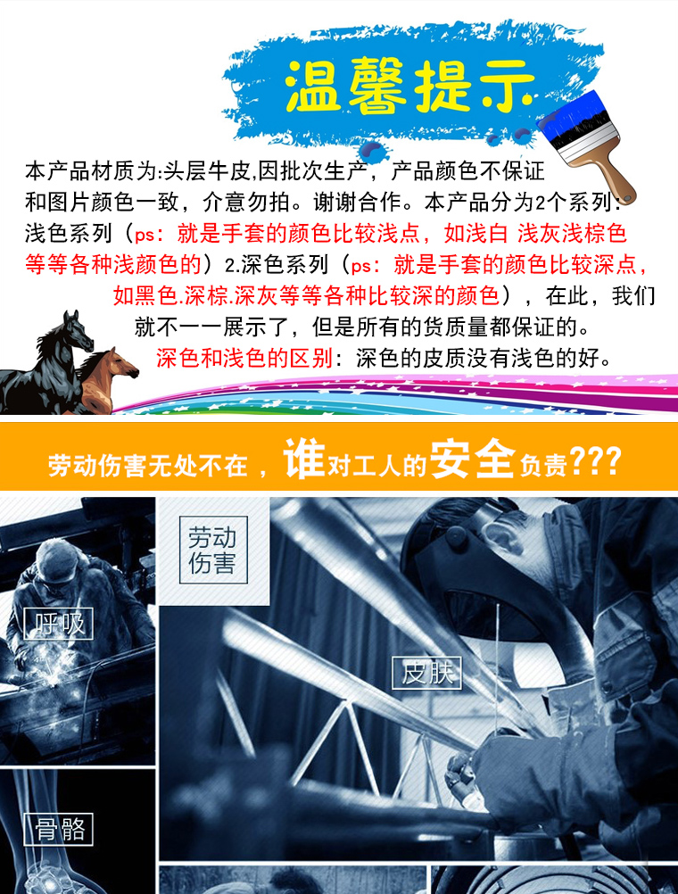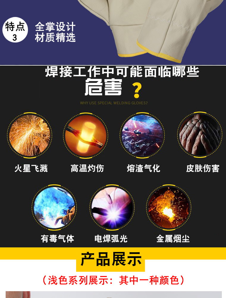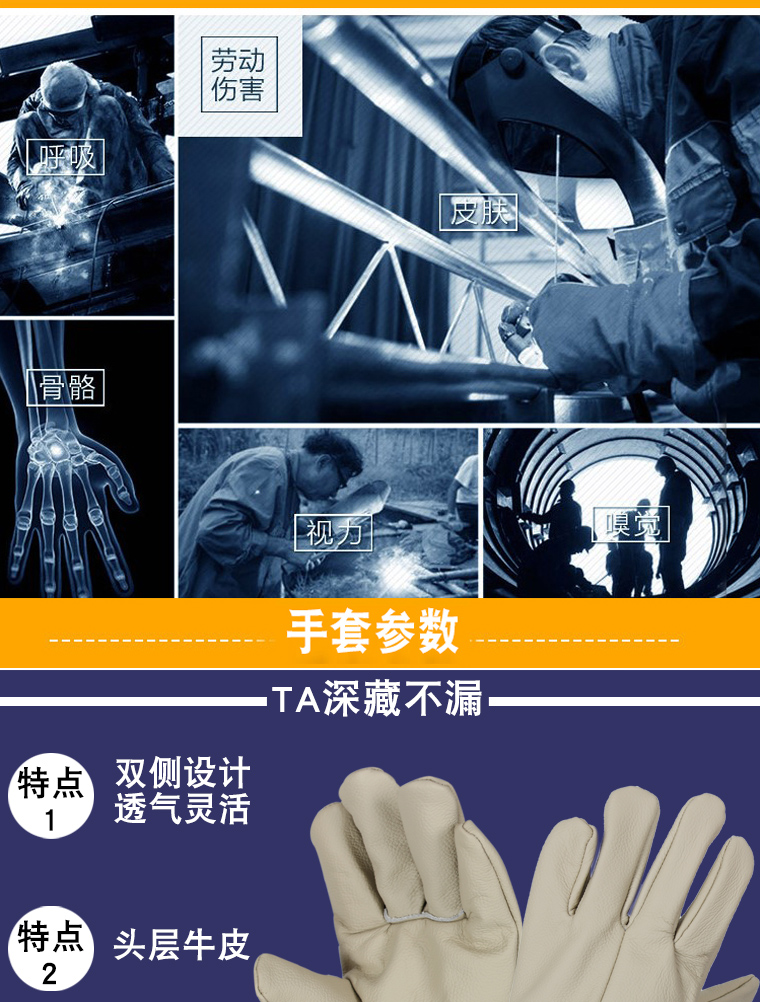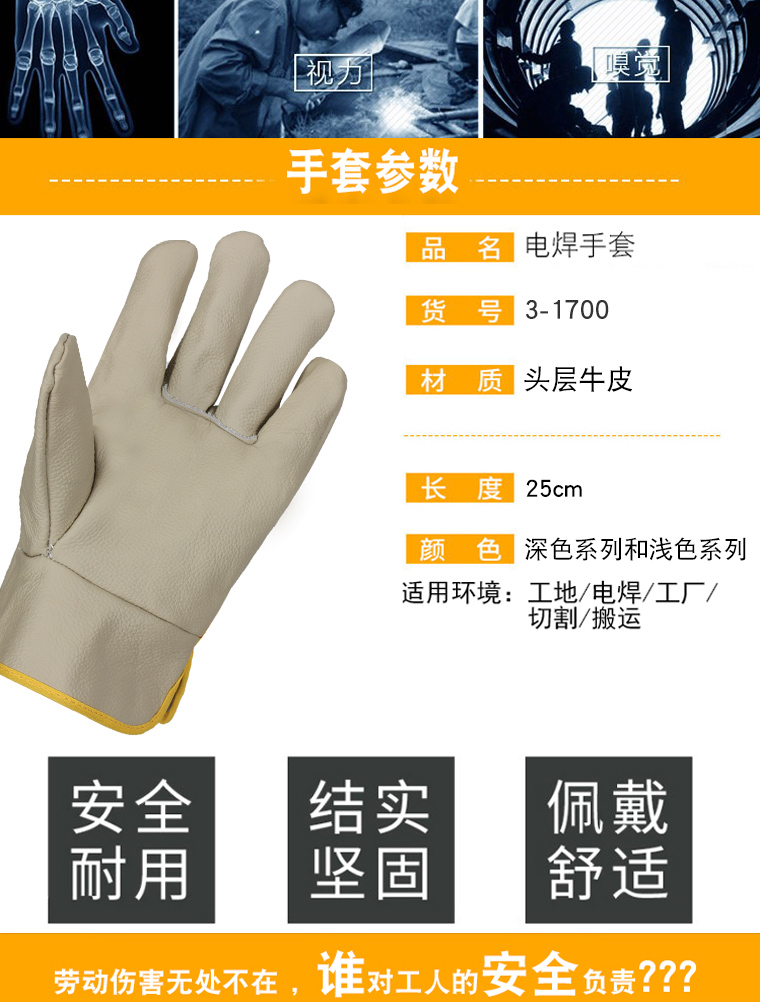 工艺制造加工、玻璃制造业、劳保电焊工专用手套,同