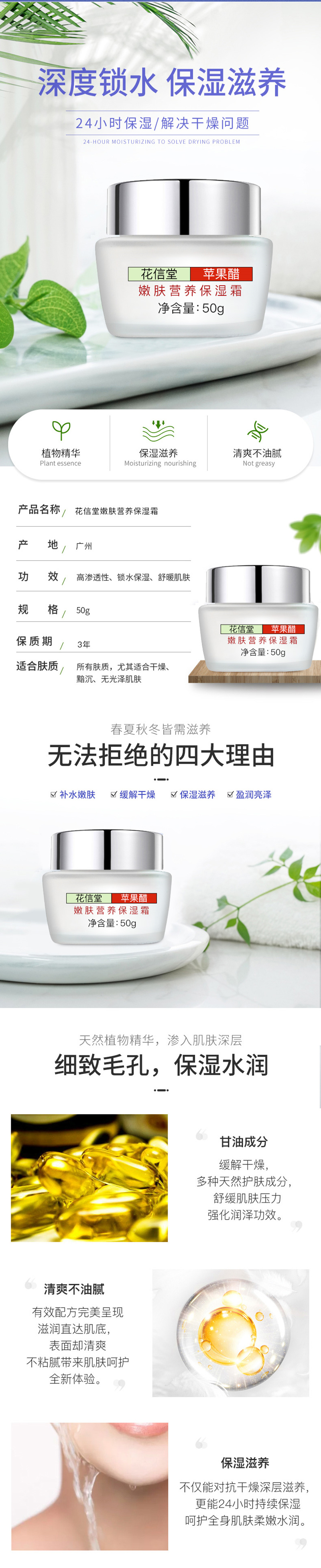 Крем с яблочным уксусом Huaxintang для питания и увлажнения кожи, освежающий, осветляющий и глубоко питающий
