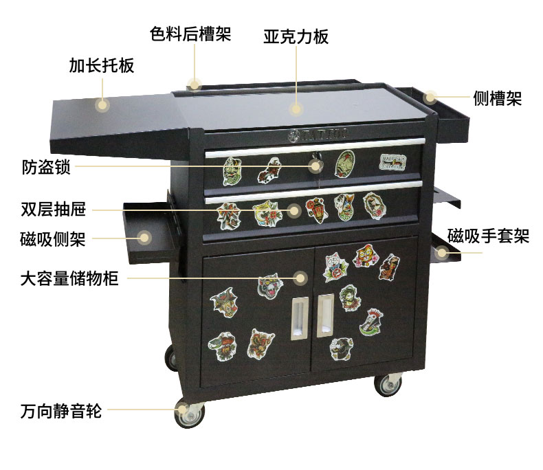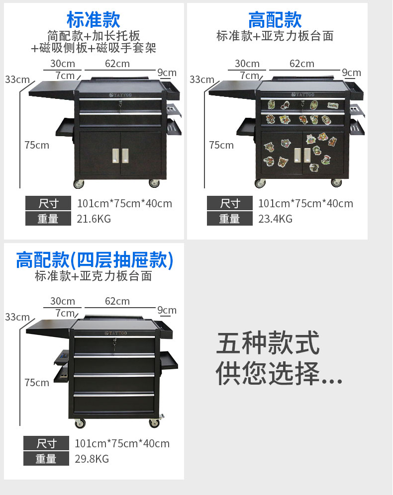 Обновленный тату-стол с ящиками и тележкой для тату-инструментов, мобильный шкаф на колесах, операционный стол для макияжа