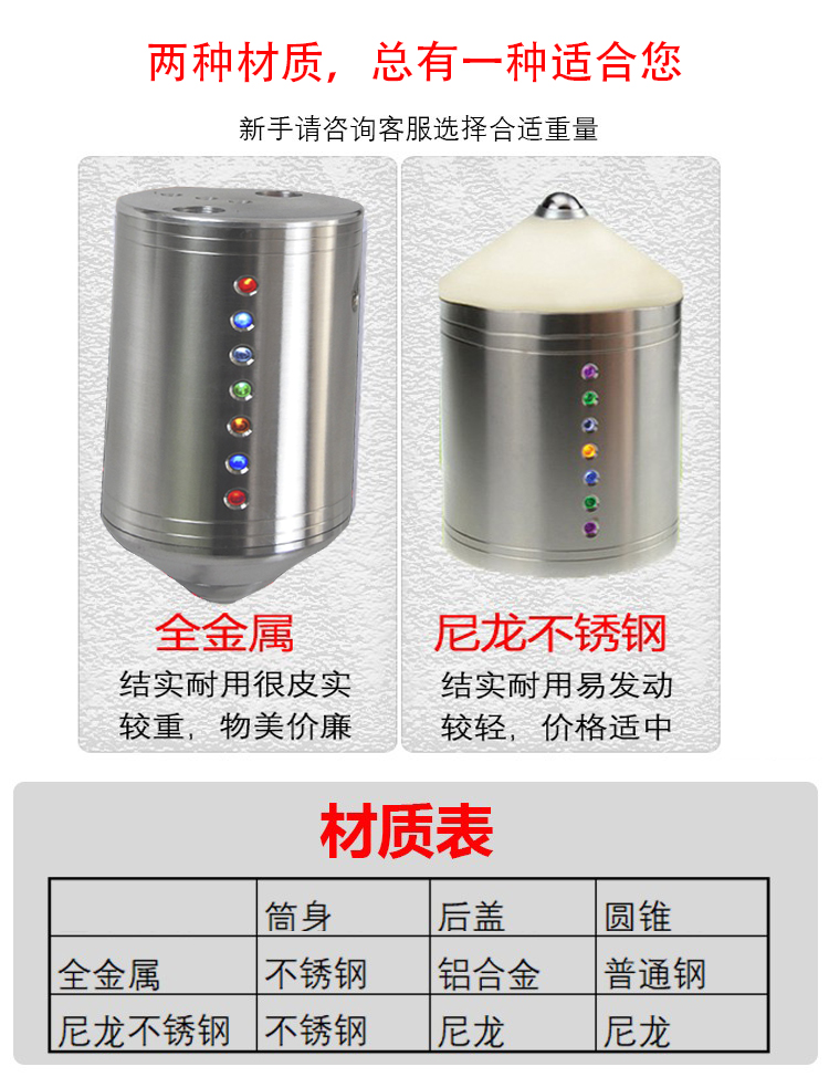 尼龙不锈钢和全金属陀螺经典款,拆卸活头的方法不一样,联系客服领取视频教程。
