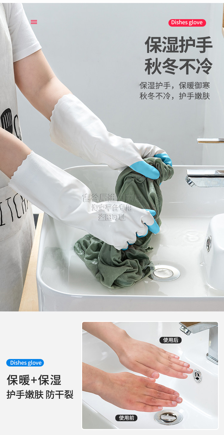 Домашние чистящие перчатки для женщин, утолщённые водонепроницаемые перчатки для кухни, мытья посуды и одежды, зимние с флисовой подкладкой, долговечные