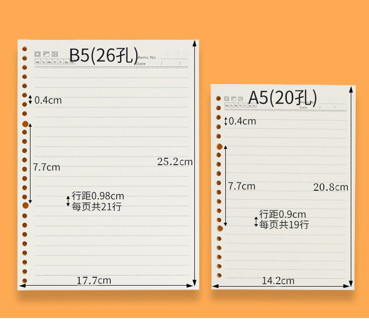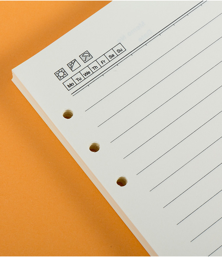 | Цветовые варианты | A5-линия, 6 отверстий (300 листов/600 страниц), A5-линия, 6 отверстий (500 листов/1000 страниц), B5-линия, 9 отверстий (300 листов/600 страниц), B5-линия, 9 отверстий (500 листов/1000 страниц), A5-линия, 20 отверстий (300 листов/600 страниц), A5-линия, 20 отверстий (500 листов/1000 страниц), B5-линия, 26 отверстий (300 листов/600 страниц), B5-линия, 26 отверстий (500 листов/1000 страниц), A5 без линий, 6 отверстий (300 листов/600 страниц), B5 без линий, 9 отверстий (300 листов/600 страниц), A5 без линий, 20 отверстий (300 листов/600 страниц), B5 без линий, 26 отверстий (300 листов/600 страниц) |