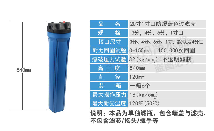 Фильтр для воды 20 дюймов с входами 3/4/6 и 1 дюйм для фильтрации водопроводной воды