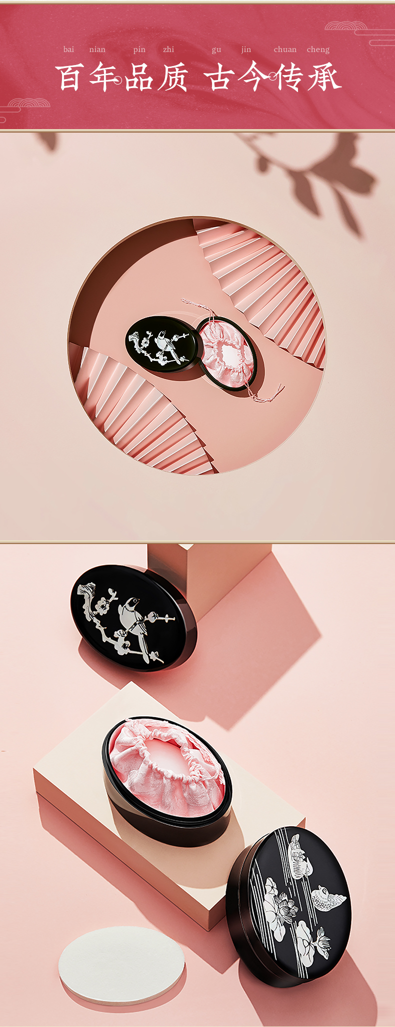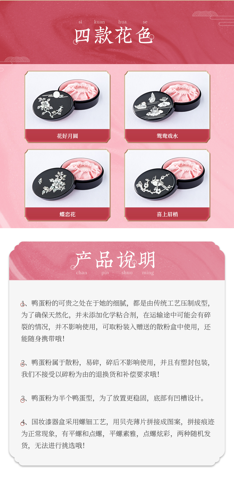 2.商品四款选项,粉色白色粉质并无不同,只是漆盒图案区别;