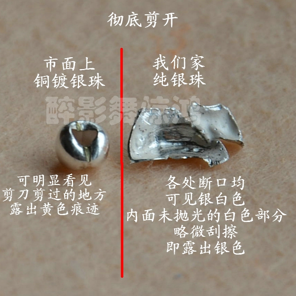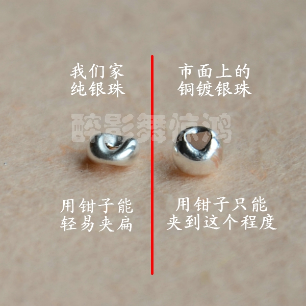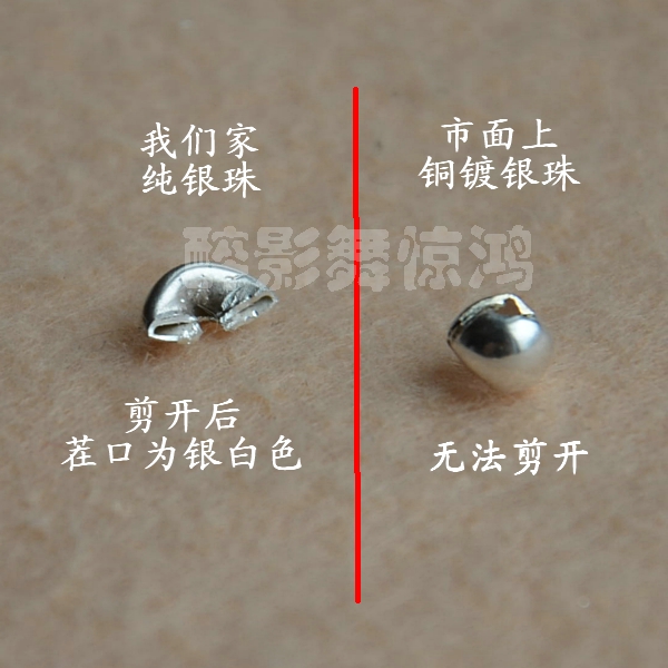 (2)查硬度:白银硬度较铜低,而较铅、锡大,故用大头针稍用力划实物的 表面进行测试,如针头打滑,表面很难留下痕迹,则可判定为铜质饰品;如为铅 锡质地,则痕迹很明显、突出;如实物留有痕迹而又不太明显,便可初步判定 为白银饰品。纯白银饰品用手拉,折就能使之变形。