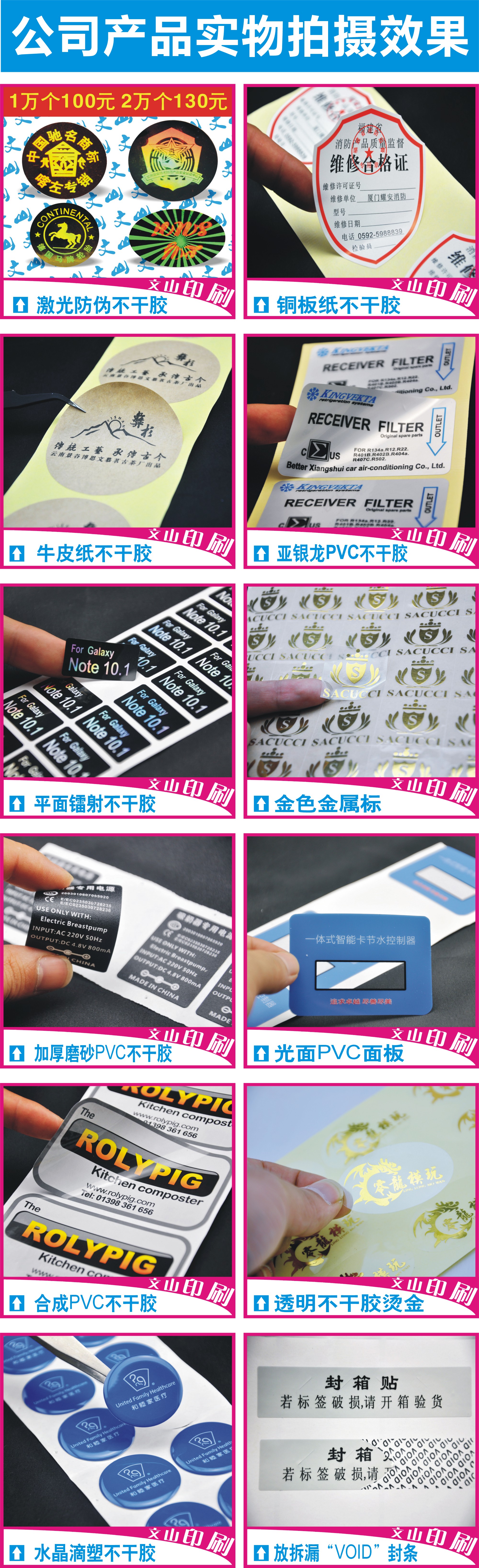 【材质】铜版纸/亚银龙/透明龙/拉丝PVC/牛皮纸/光金龙/镭射PVC等