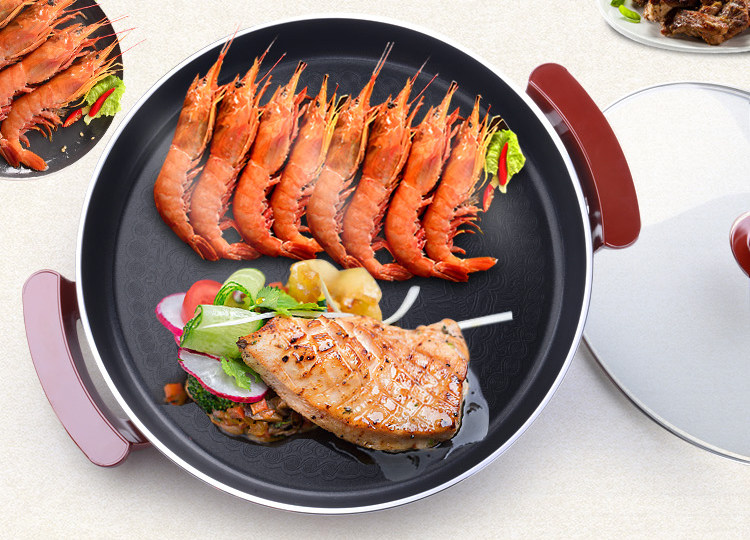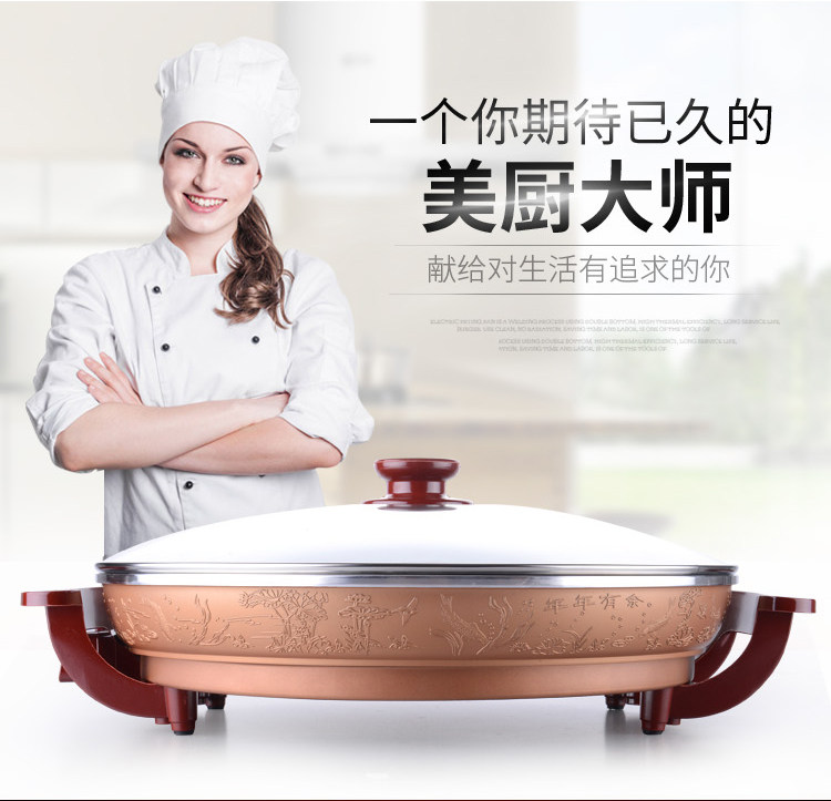 傻厨3840电煎锅韩式多功能烙饼锅平底家用电热锅电饼锅不粘锅烧烤