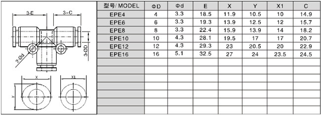 Оригинальный быстроразъемный пластиковый фитинг для пневматического шланга Yiri EPE Т-образный (4 6 8 10 12 14 16)мм