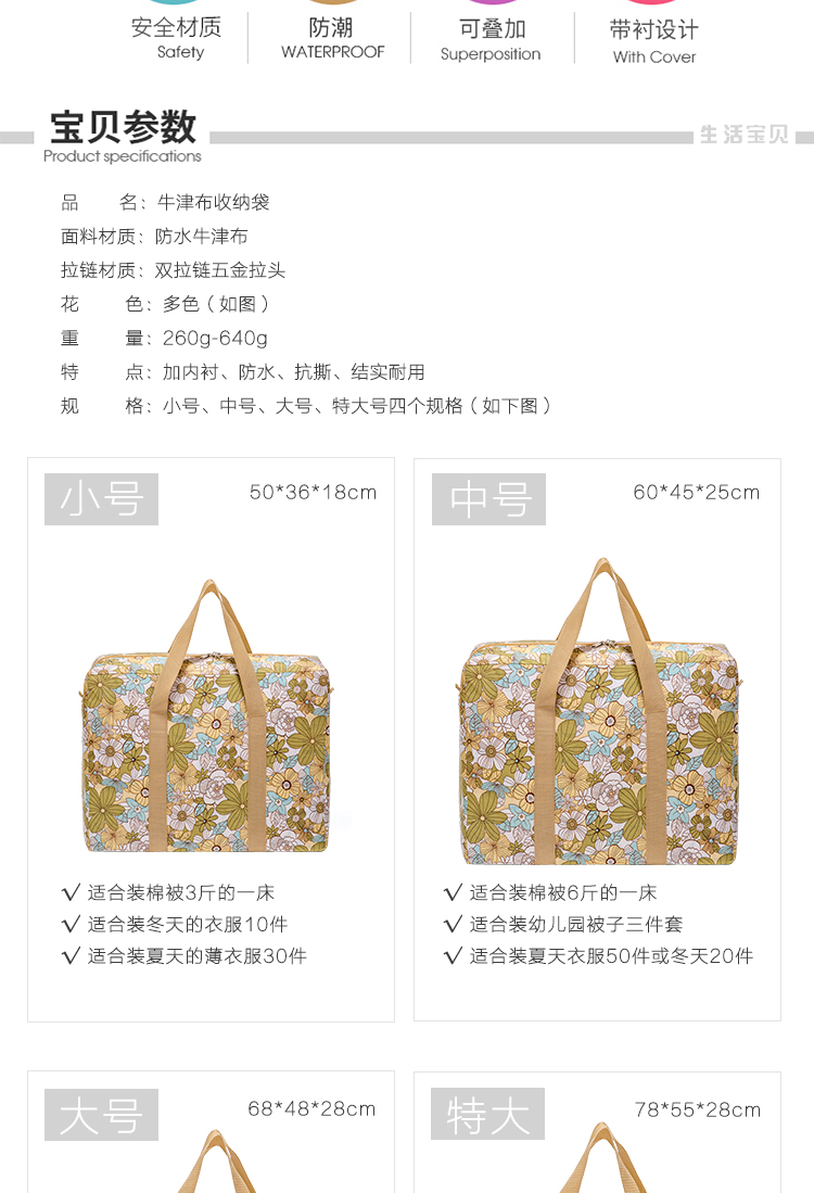 Водонепроницаемый мешок для хранения из оксфордской ткани большого объема для одежды, одеял, упаковки и переезда