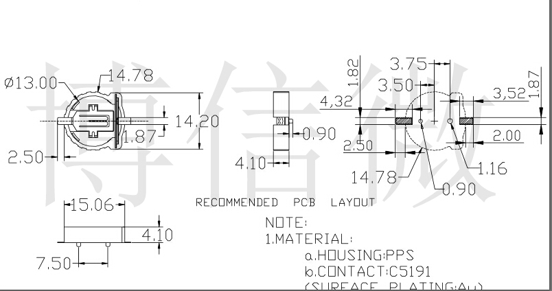 BS-1220-2 Держатель батареи CR1220 с поверхностным монтажом для кнопочной батарейки 1220