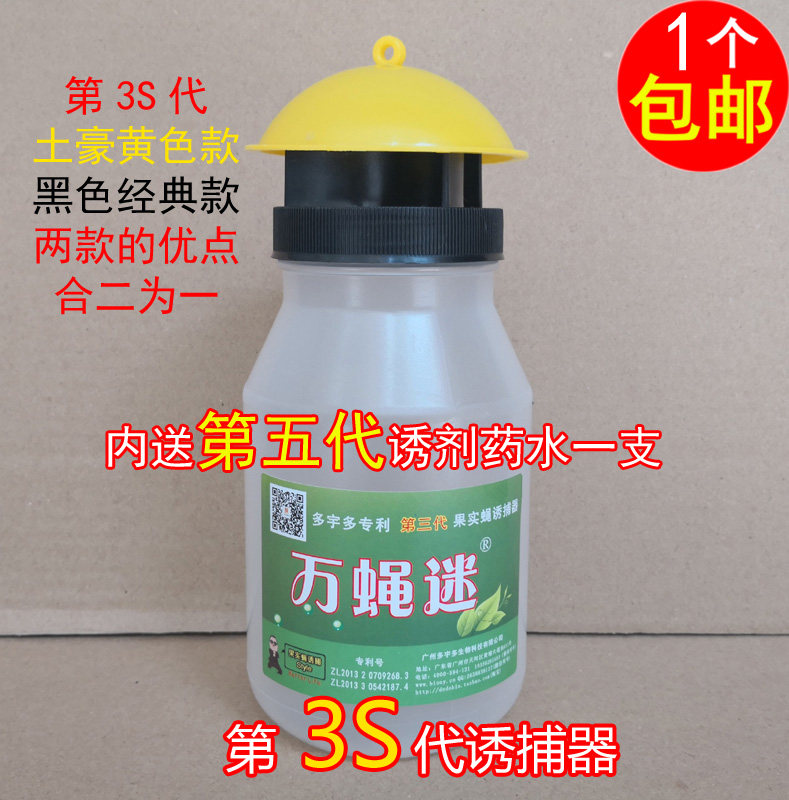果蝇诱捕器是一种以害虫引诱捕剂作为诱饵,以引诱剂散发出的气味来吸引危害水果蔬菜上的果实蝇、瓜菜蝇、家蝇、荔枝蒂蛀虫等果蔬害虫,进入诱捕器后出不来,以至将其杀死的容器。其成本低,简单实用,覆盖范围宽,使用时效期长等优点,也是生产绿色产品的重要工具之一。