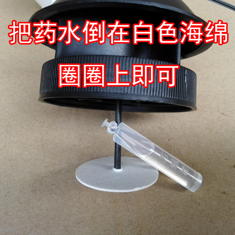 A:一是直接倒在诱捕器内的海绵圈圈,一瓶药水诱剂可以倒2个诱捕捉器,15天添加一次。