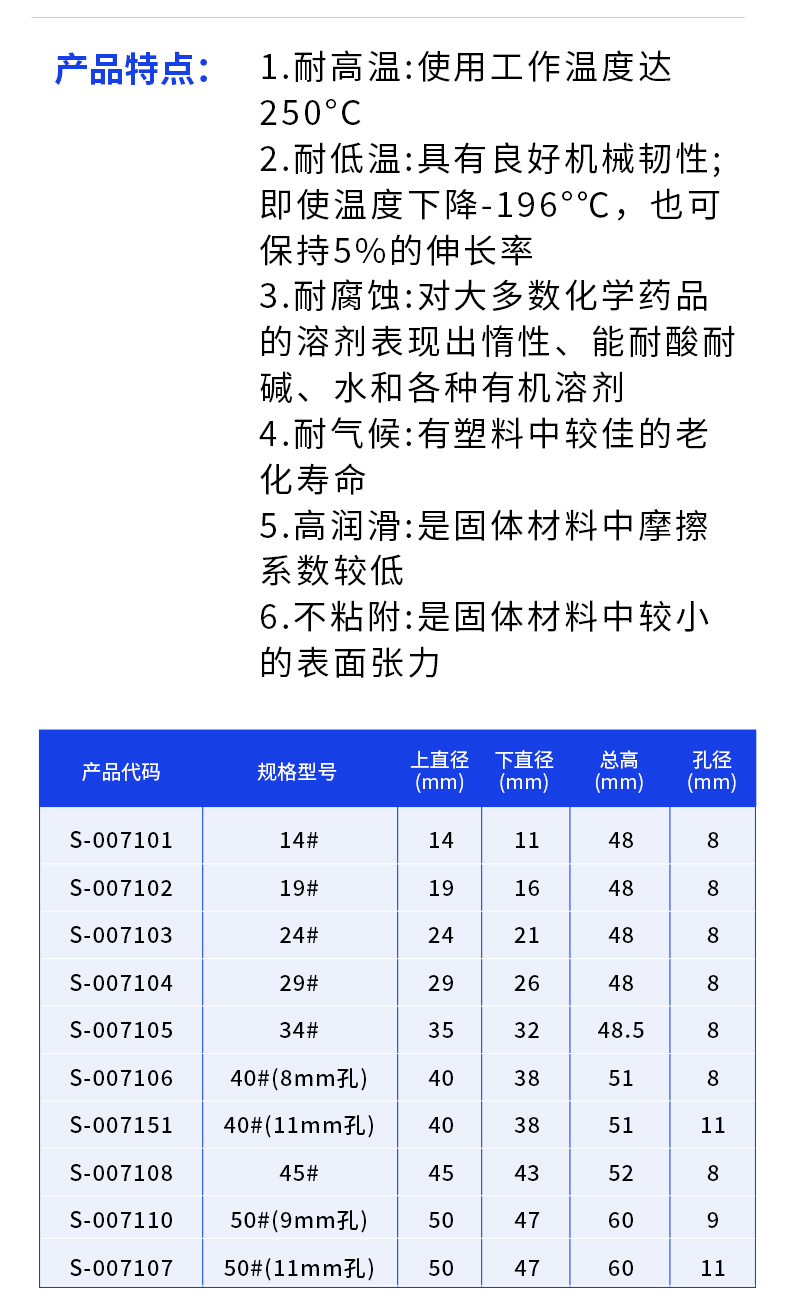 | Цветовые варианты | Молочно-белый, белый, мешалка-пробка из ПТФЭ 14#, мешалка-пробка из ПТФЭ 19#, мешалка-пробка из ПТФЭ 24#, мешалка-пробка из ПТФЭ 29#, мешалка-пробка из ПТФЭ 34#, мешалка-пробка из ПТФЭ 40# (отверстие 8 мм), мешалка-пробка из ПТФЭ 40# (отверстие 11 мм), мешалка-пробка из ПТФЭ 45#, мешалка-пробка из ПТФЭ 50# (отверстие 9 мм), мешалка-пробка из ПТФЭ 50# (отверстие 11 мм), мешалка-пробка из ПТФЭ 60#, уплотнительное кольцо мешалки 7*11 мм (10 шт.), уплотнительное кольцо мешалки 7*11 мм (100 шт.), уплотнительное кольцо мешалки 9*15 мм (10 шт.), уплотнительное кольцо мешалки 9*15 мм (100 шт.), сплошная пробка из ПТФЭ 8#, сплошная пробка из ПТФЭ 10#, сплошная пробка из ПТФЭ 12#, сплошная пробка из ПТФЭ 14#, сплошная пробка из ПТФЭ 16#, сплошная пробка из ПТФЭ 19#, сплошная пробка из ПТФЭ 24#, сплошная пробка из ПТФЭ 29#, сплошная пробка из ПТФЭ 34# |