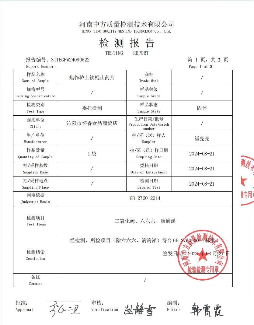 | Категория специализированных продуктов | Железный ямс из уезда Вэньсянь |