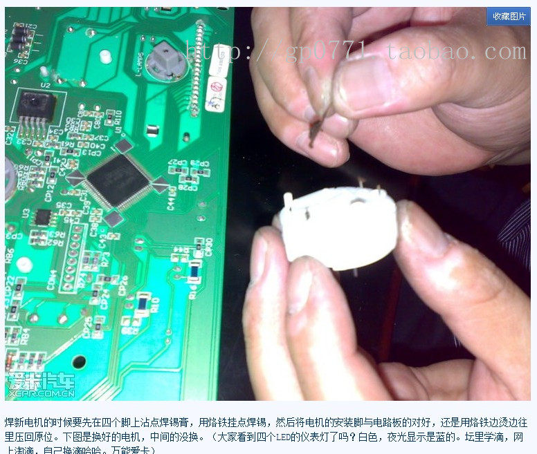 这个是小店的顾客买回电机自己更换凯越汽车仪表电机的帖子,很经典,很专业哦!感谢顾客 一品天下8 的分享。谢谢。