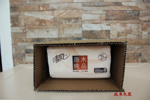 8号的纸箱可以竖着放两包抽纸,也有空间结余(如下)