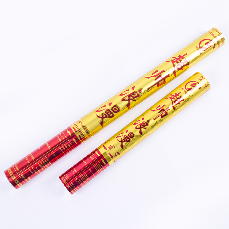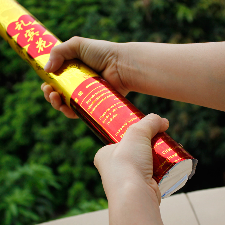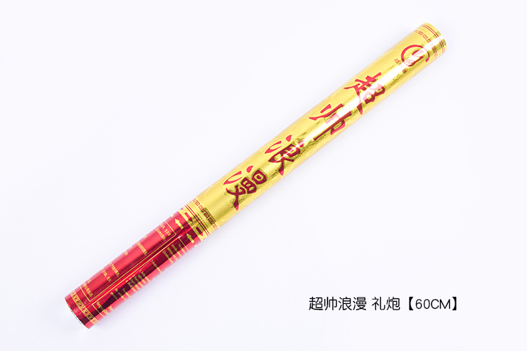 以精美造型的彩纸条、金泊碎纸、金泊心形、等为内容物,采用压缩气体为发射动力,无火药,无爆源,无污染,释放安全可靠,操作极为方便。只需轻轻旋转或按动开关,顷刻间五彩缤纷的彩花,彩环,彩带,彩条飞向10-15米左右的空中,缓缓飘落,能够强烈烘托喜庆气氛,把喜庆活动推向高潮。