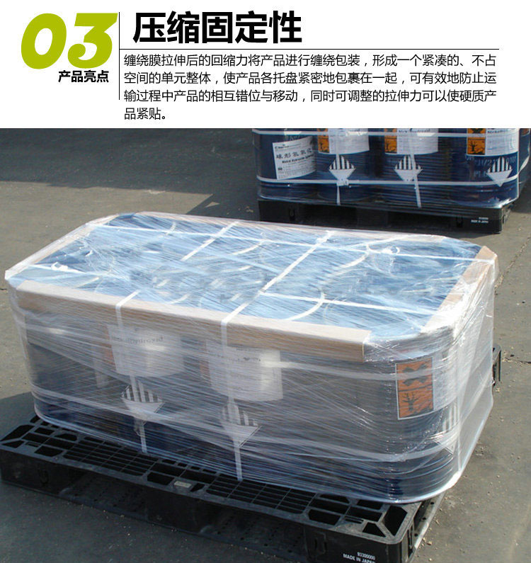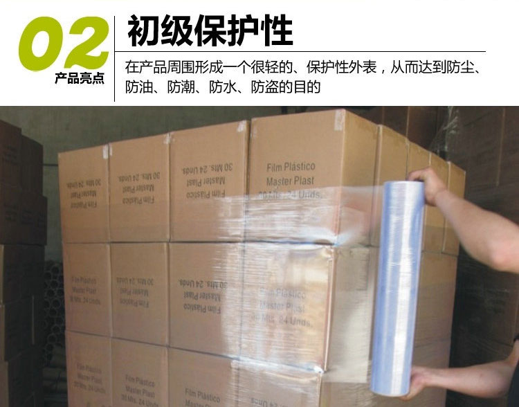 此产品特征是以静电吸附产生自粘性,因此他对被包装产品不会产生二次污染,同时由于产品特有的高透明度,用于缠绕物品、起到防尘、防潮、防静电、、对物品保护的作用、使用时经济实惠、可以使被包装产品更漂亮。该产品广泛用于电线、电缆、胶管、钢管、各种精加工滚筒、机械设备、五金配件、家具、建筑装材料、旅游运动鞋、无纺布、包装材料等领域。