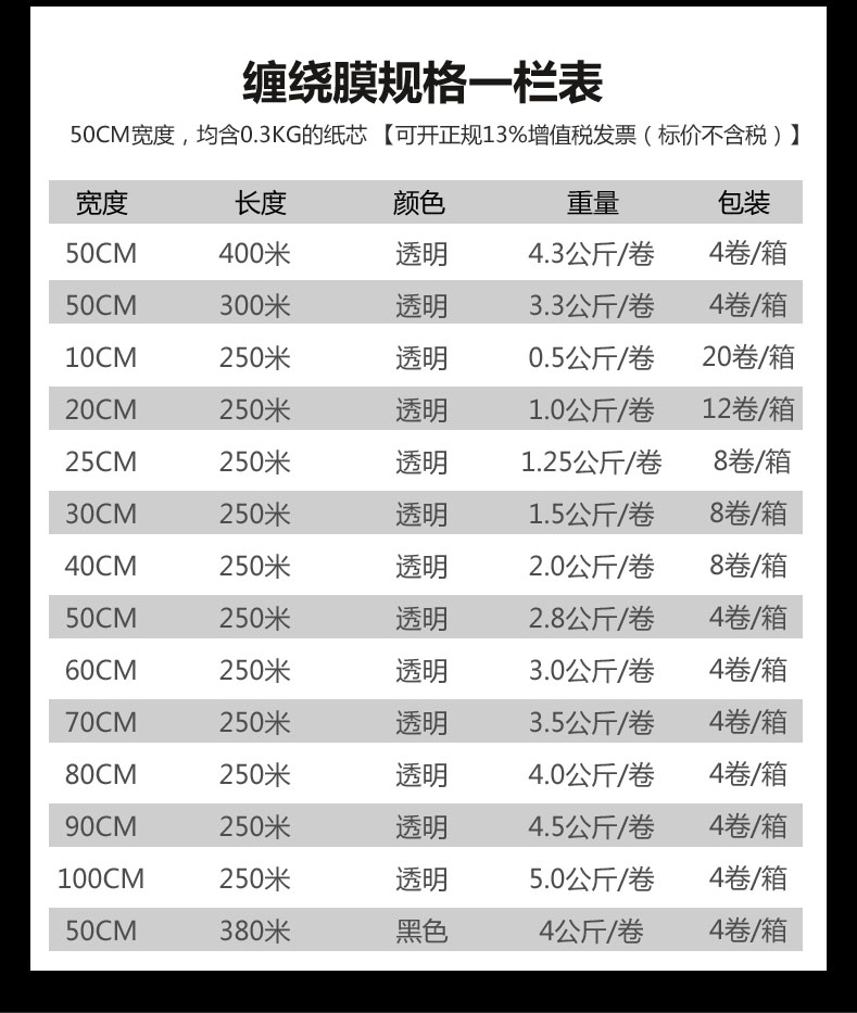 | Цветовые варианты | Ширина 50 см * 5 цзинь [280 метров на рулон], ширина 50 см * 6,6 цзинь [330 метров на рулон], ширина 50 см * 8 цзинь [420 метров на рулон], ширина 50 см * 10,6 цзинь [600 метров на рулон], чёрный цвет ширина 50 см * 8 цзинь [550 метров на рулон], промышленного типа ширина 50 см * 20 цзинь [1000 метров на рулон], промышленного типа ширина 50 см * 30 цзинь [1500 метров на рулон], ширина 10 см * 1 цзинь [280 метров на рулон], ширина 20 см * 2 цзинь [375 метров на рулон], ширина 25 см * 2,5 цзинь [280 метров на рулон], ширина 30 см * 3 цзинь [280 метров на рулон], ширина 40 см * 4 цзинь [280 метров на рулон], ширина 60 см * 6 цзинь [280 метров на рулон], ширина 70 см * 7 цзинь [280 метров], ширина 80 см * 8 цзинь [280 метров], ширина 100 см * 10 цзинь [280 метров на рулон] |