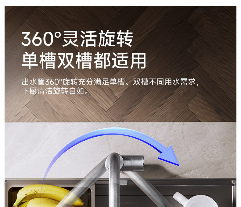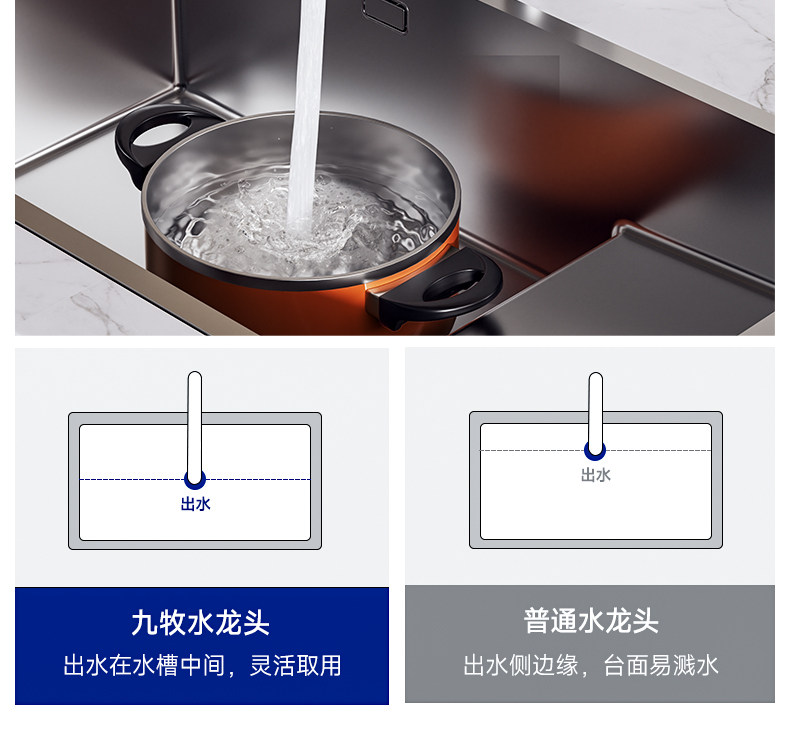九牧304不锈钢厨房龙头冷热水洗菜盆防溅水槽家用旋转洗碗池龙头