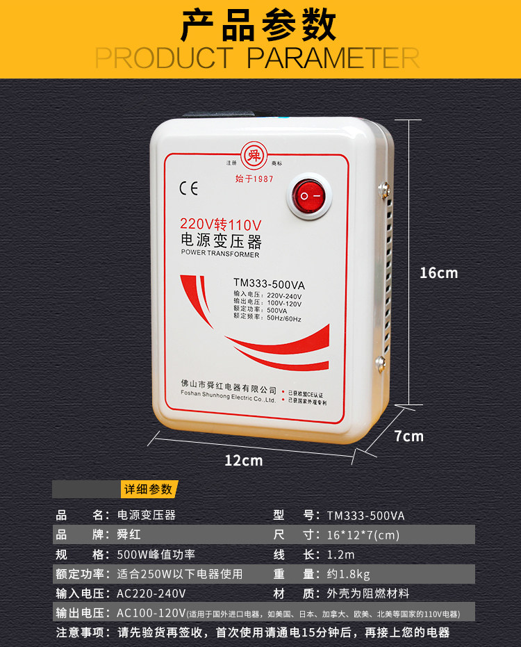 Трансформатор 220В в 110В Япония США 110В в 220В 100В преобразователь напряжения Shunhong 500Вт
