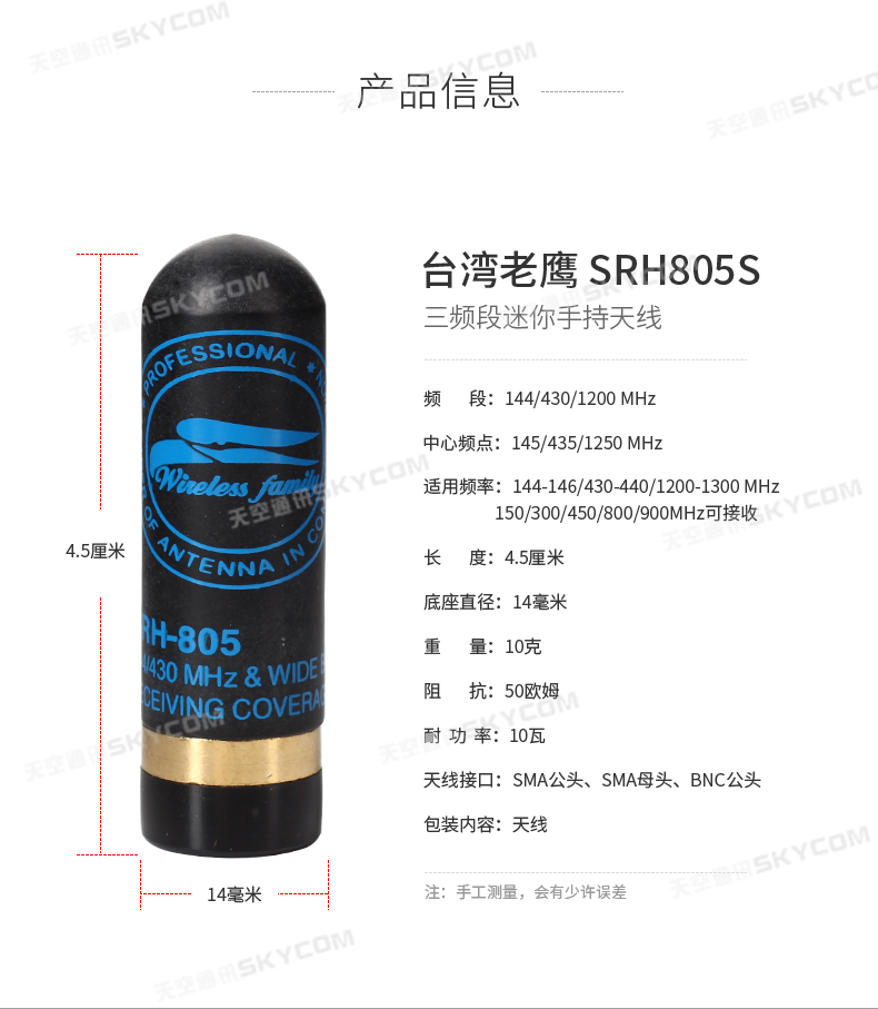Тайвань Eagle SRH805S UV двухдиапазонная мини-антенна для портативной радиостанции, пуля, портативная короткая антенна 4,5 см