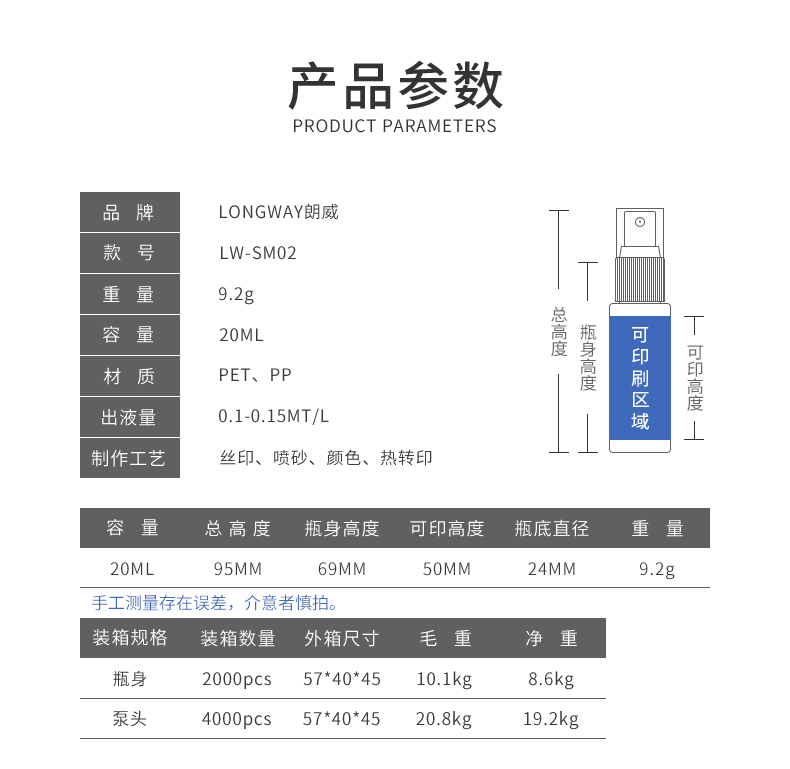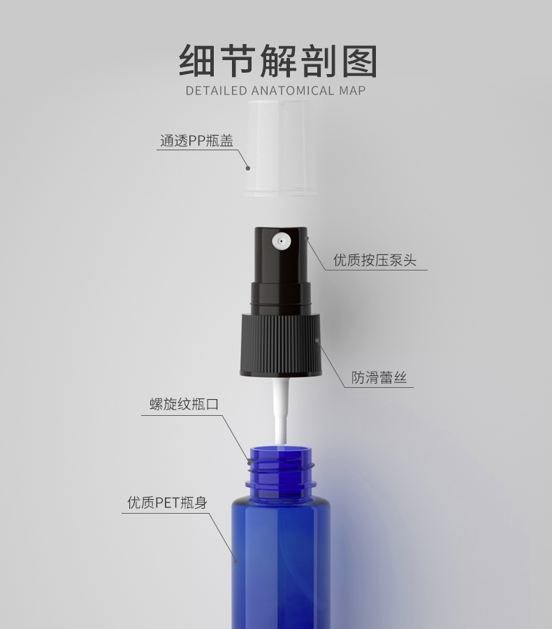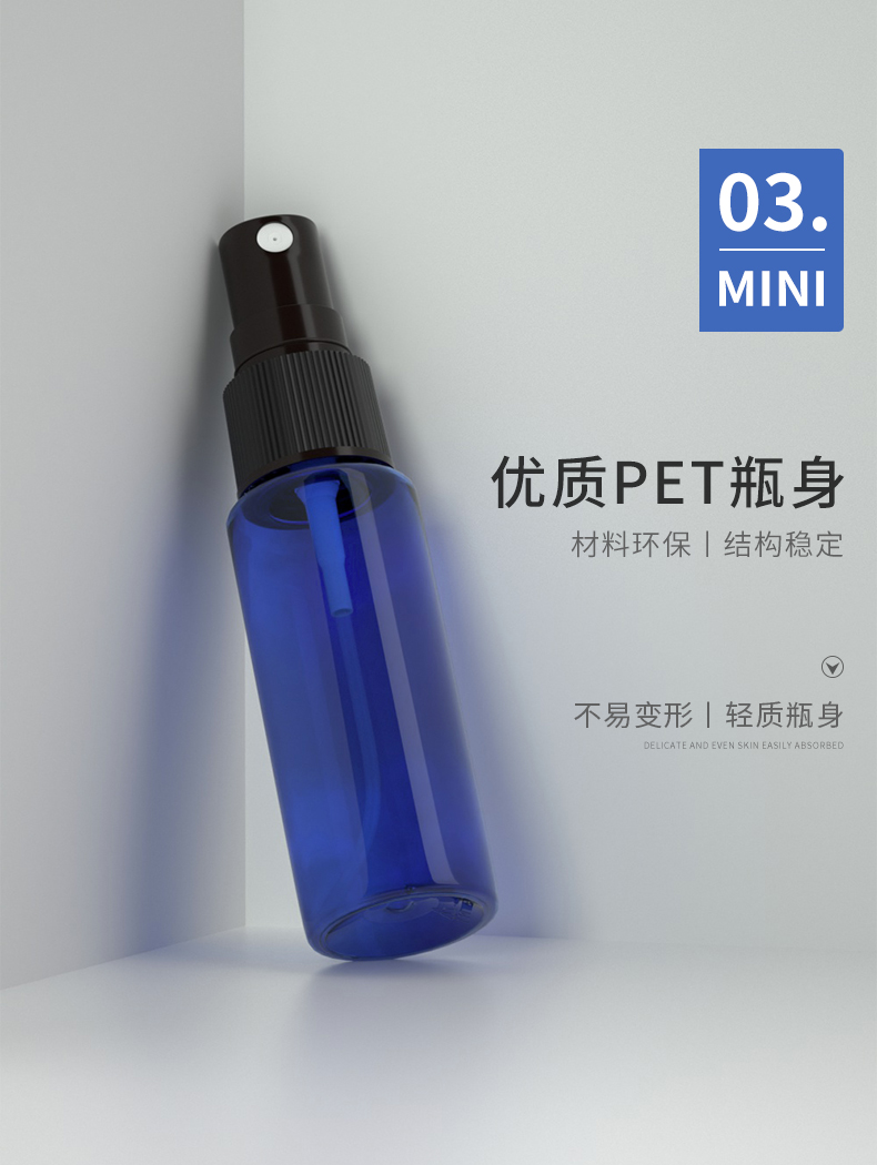 20 мл плоская PET распылительная бутылка Пластиковая бутылка для розовой воды и гидролата с мелкодисперсным распылителем