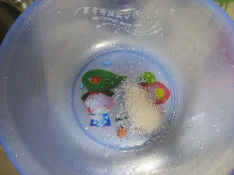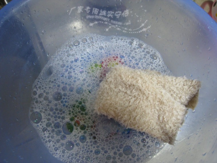 找了一个小盆倒了一点儿全能清洗剂,然后掉了点热水让其溶于水 很节能能哦,是液体清洁剂无法比的