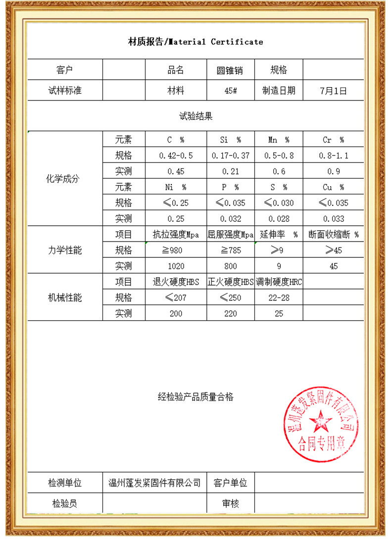 | Модель | Конический штифт с внутренней резьбой из стали 40CR по GB118 |