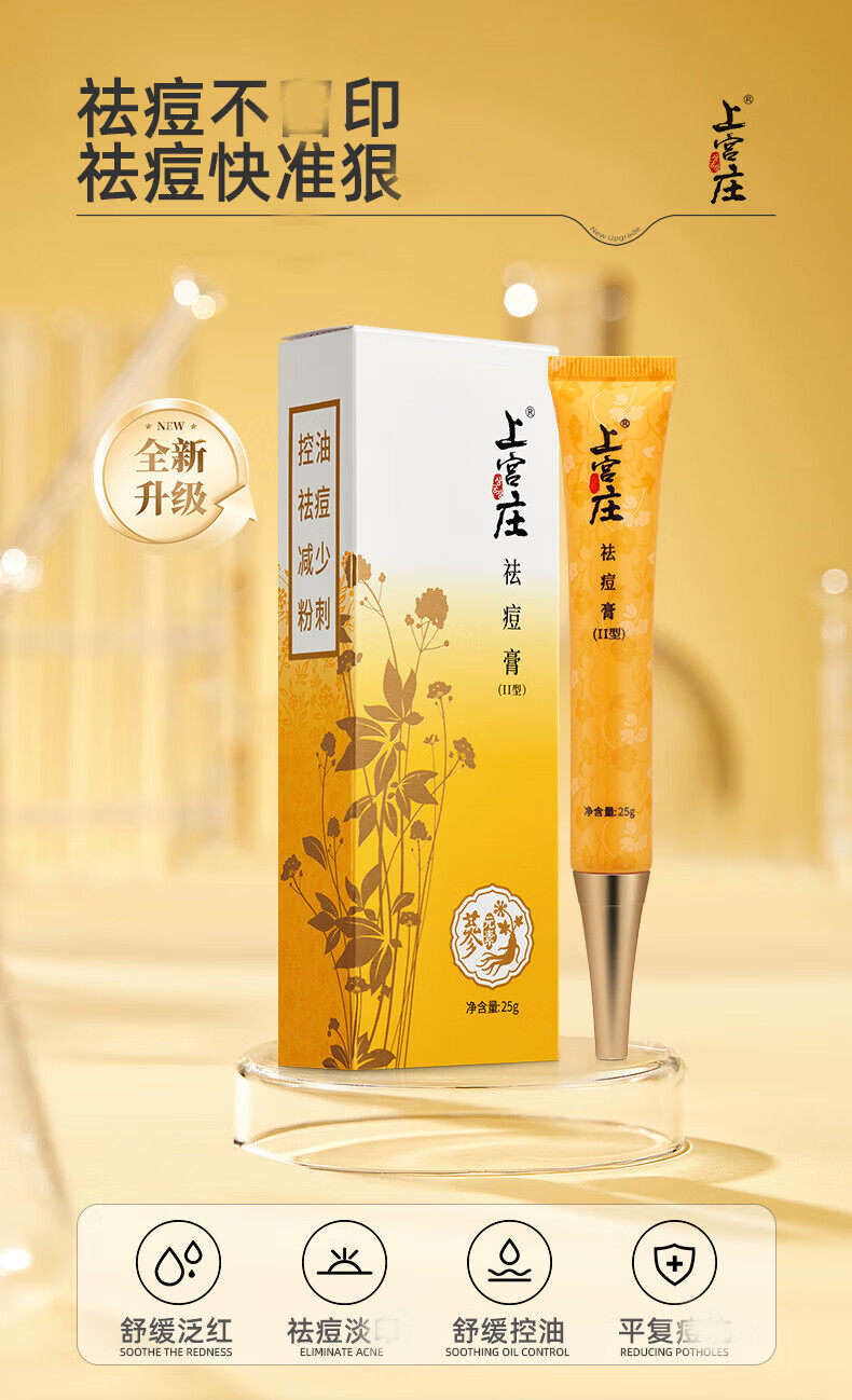 上宫庄祛痘膏顽痘净加强型男女学生去闭口粉刺青春痘痘痘印上官庄