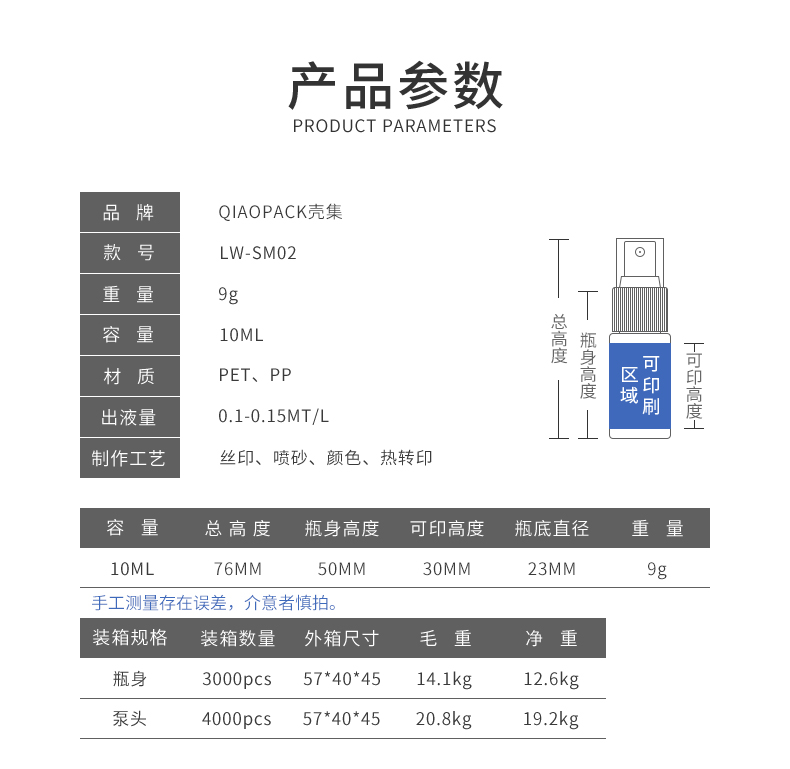 | Название продукта | 10 мл флакон с распылителем PET с плоским плечом |