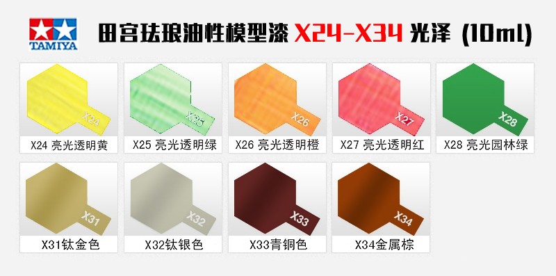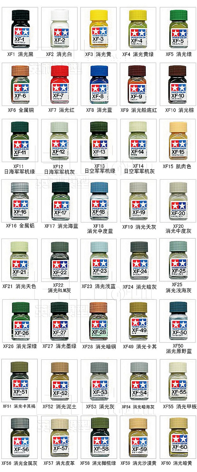| Цветовые варианты | X1 Глянцевый черный, X2 Глянцевый белый, X3 Глянцевый королевский синий, X4 Глянцевый синий, X5 Глянцевый зеленый, X6 Глянцевый оранжевый, X7 Глянцевый красный, X8 Глянцевый лимонно-жёлтый, X9 Глянцевый коричневый, X10 Пушечный металл, X11 Серебро, X12 Золото, X13 Металлический синий, X14 Глянцевый небесно-голубой, X15 Глянцевый светло-зеленый, X16 Глянцевый фиолетовый, X17 Глянцевый розовый, X18 Полуглянцевый черный, X19 Глянцевый дымчатый, X20 Эмаль растворитель, X21 Матирующий агент, X22 Глянцевая прозрачная, X23 Глянцевая прозрачная синяя, X24 Глянцевая прозрачная желтая, X25 Глянцевая прозрачная зеленая, X26 Глянцевая прозрачная оранжевая, X27 Глянцевая прозрачная красная, X28 Глянцевый садовый зеленый, X31 Титановое золото, X32 Титановое серебро, X33 Бронза, X34 Металлический коричневый |