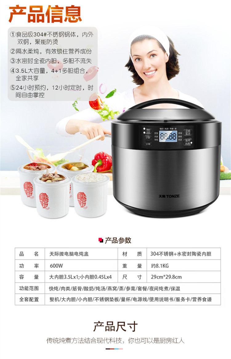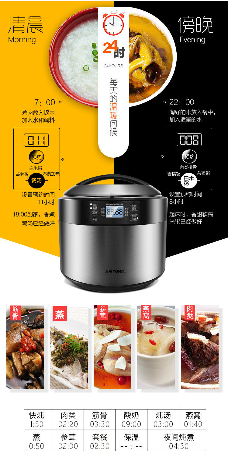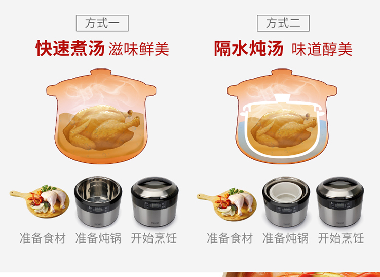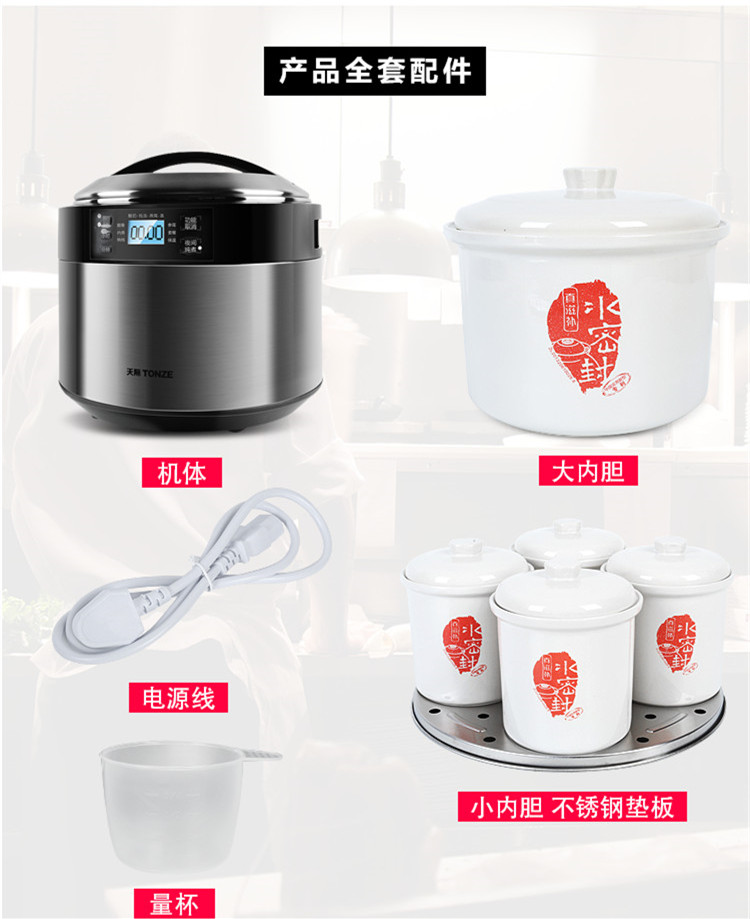 | Функции меню | Гнездо ласточки, питательное приготовление на пару, запечённый яичный пудинг, тушёные десерты, белая каша, детское питание, тушение/маринование мяса, каша из смешанных злаков, питательный суп, тушёная рыбная желатина |