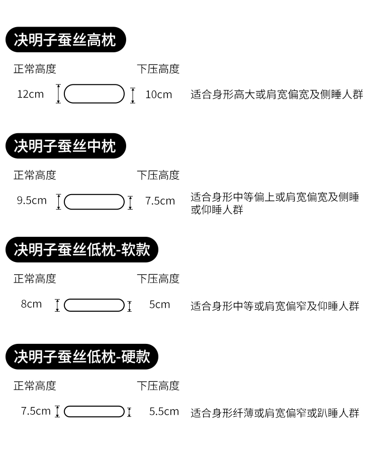 | Цветовые варианты | Одинарная [Низкая подушка - мягкая] шелковая подушка с семенами кассии, Одинарная [Низкая подушка - твердая] шелковая подушка с семенами кассии, Одинарная [Средняя подушка - твердая] шелковая подушка с семенами кассии, Одинарная [Высокая подушка - твердая] шелковая подушка с семенами кассии, Пара [Низкая подушка - мягкая] шелковых подушек с семенами кассии, Пара [Низкая подушка - твердая] шелковых подушек с семенами кассии, Пара [Средняя подушка - твердая] шелковых подушек с семенами кассии, Пара [Высокая подушка - твердая] шелковых подушек с семенами кассии |