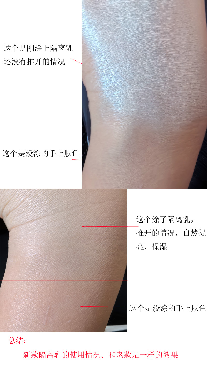 这次这个新款隔离的话,保湿度还可以,也能提亮肤色,还有一点就是的没有这么粘稠,容易推开。