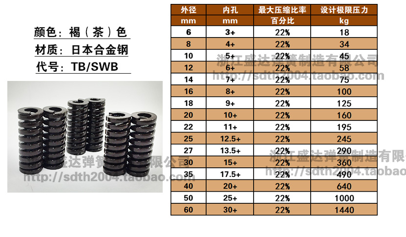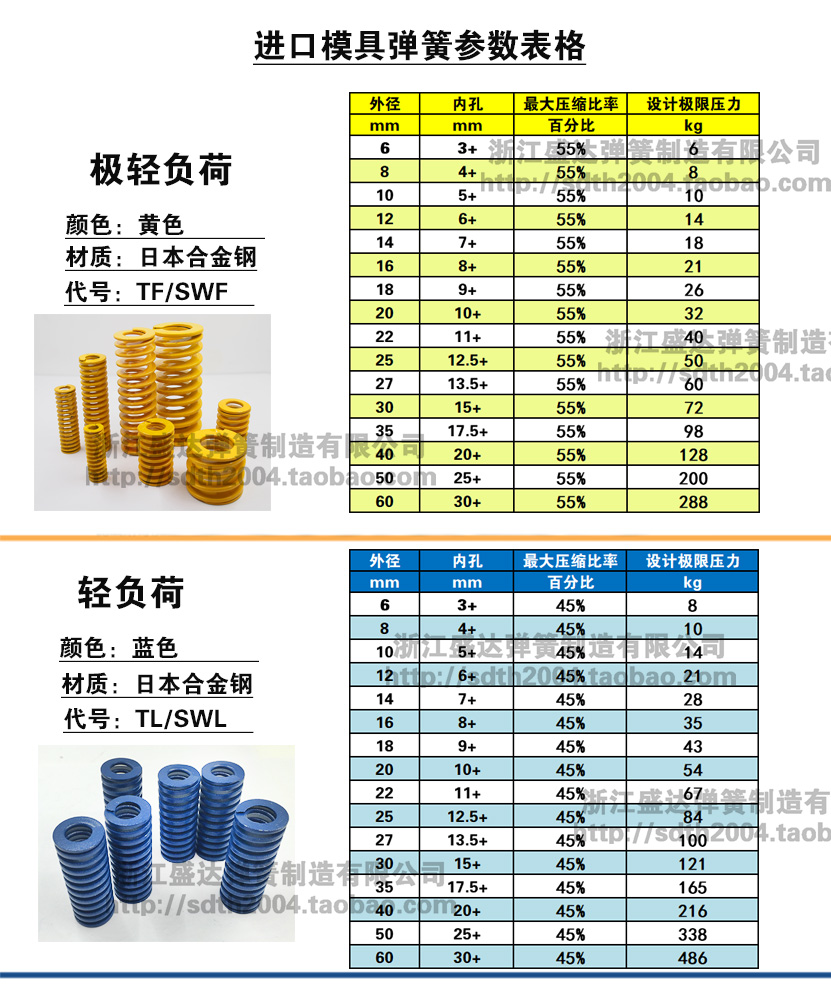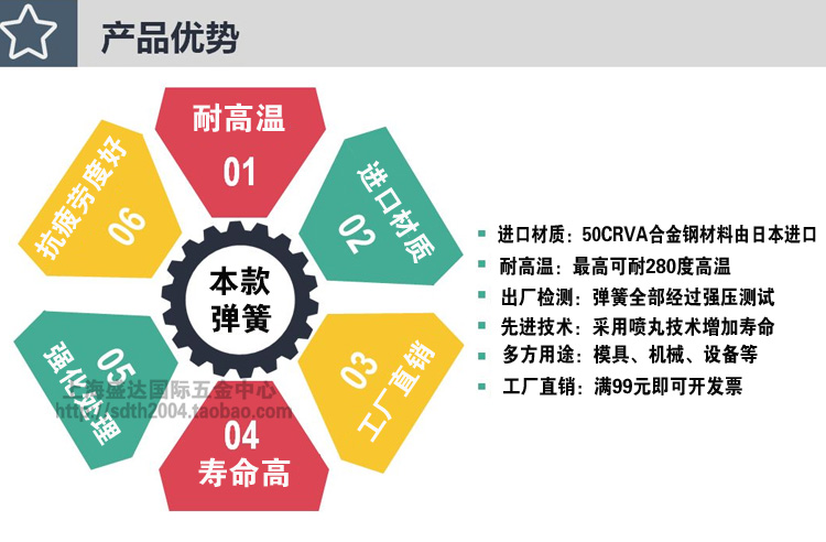 盛达弹簧厂创办于2009年,生产基地位于浙江省,销售中心位于中国经济首都、东方之珠—上海,依托长三角港口交通之便利,我公司形成了国内销售和国外出口两大营销模式,质量广受嘉奖,本公司主要生产以及销售压簧、拉簧、碟簧、模具弹簧、扭簧等弹簧类产品,另外我公司代售原装日本大同进口模具弹簧。欢迎广大客户订购或者订做!我们愿意以低价赢得信任!