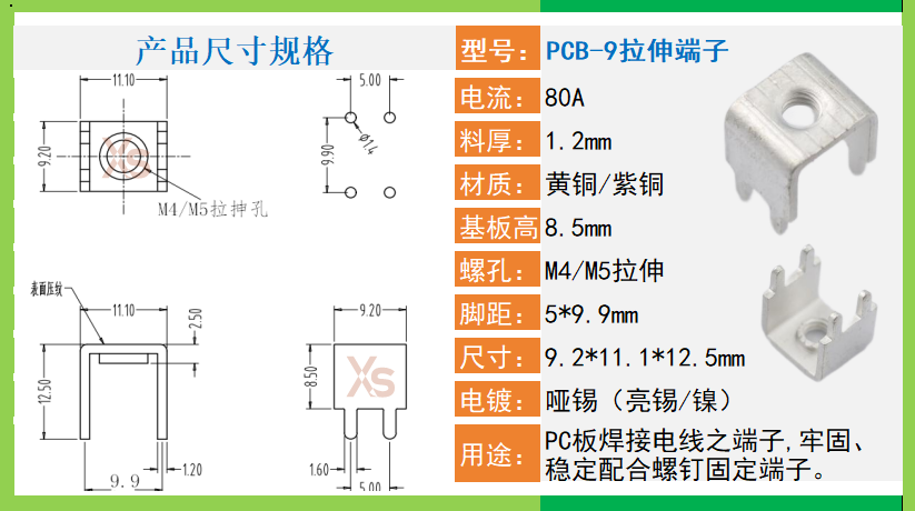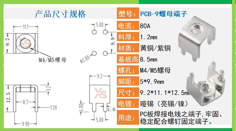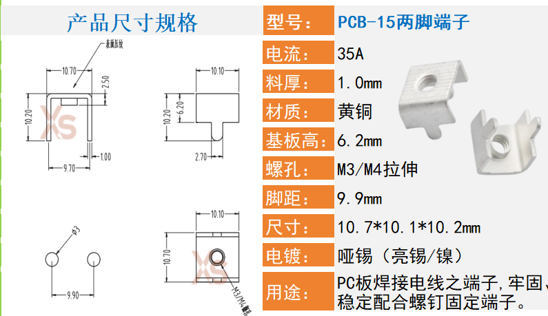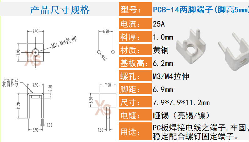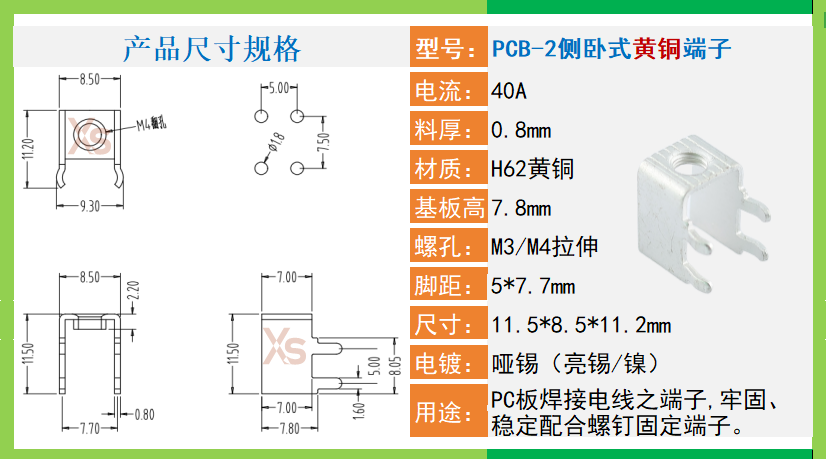 PCB-11 паяемый клеммник с четырьмя контактами, винтовое соединение из латуни