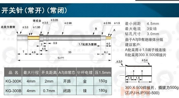 Тестовый зонд Переключающий зонд KG-300K/KG-300B Диаметр 3.0MM с нормально открытым/закрытым контактом