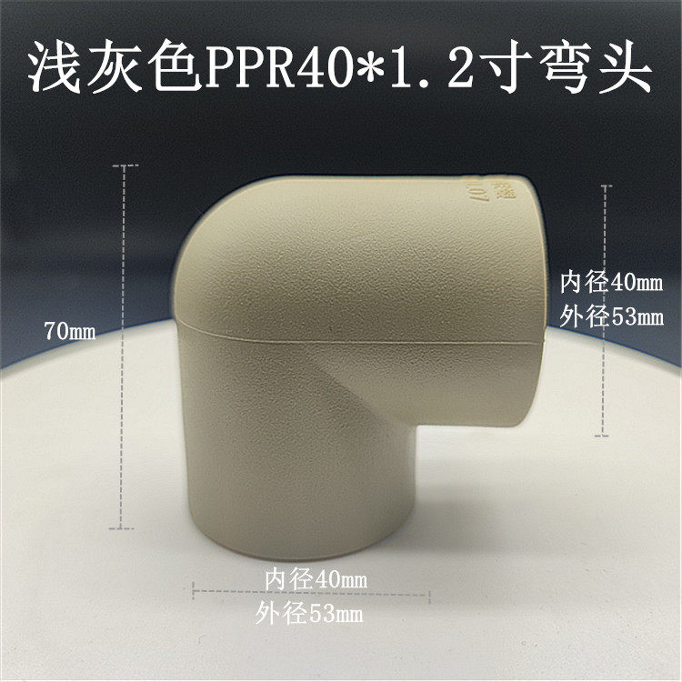 浅灰色PPR加厚弯头,需要机器热接!以上规格都是代表管的外径~外径多大就选多大的规格!单位为MM。不明白规格的可咨询客服~