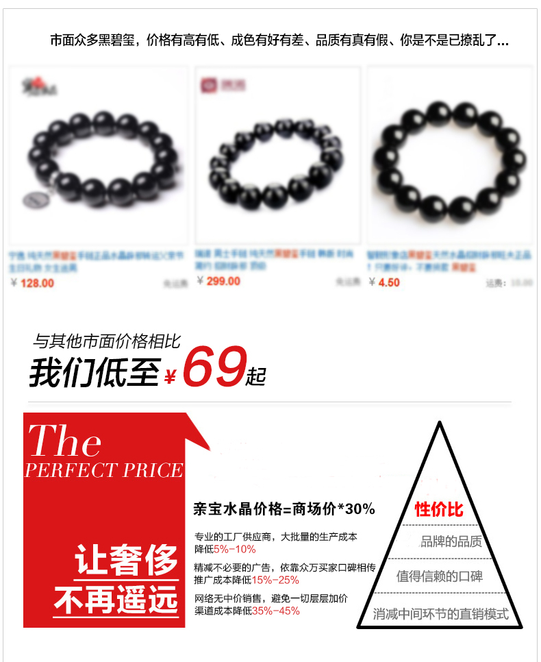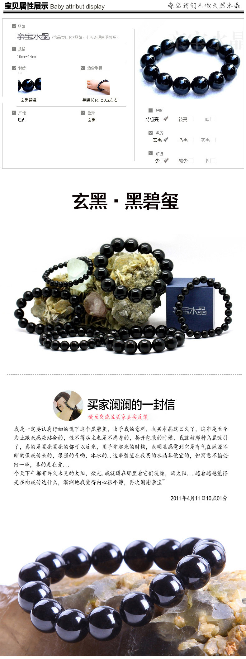 Браслет из натурального черного турмалина класса Сюаньди от Qinbao Crystal с отдельными бусинами
