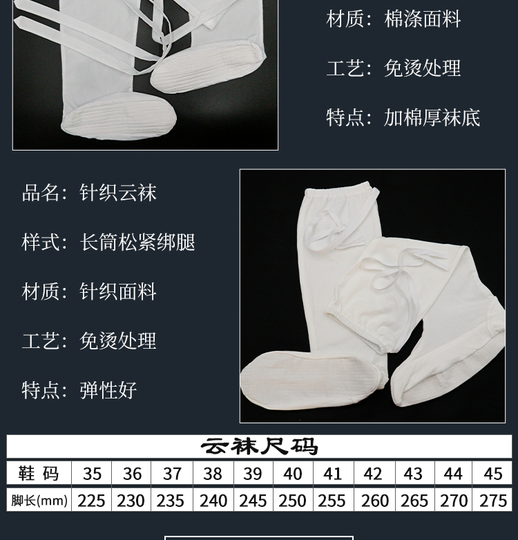 Высококачественные толстошерстные носки Удань с резинкой для ханфу, даосские бинты для ног, носки для практики тайцзи и оперы, дышащие