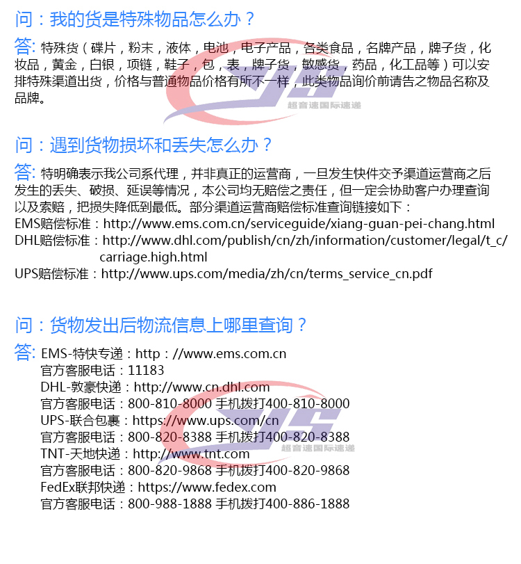 | Принимаемые виды чувствительных грузов | С батареями, порошковые, чисто электрические, хрупкие, магнитные, продукты питания, обычные грузы, медикаменты, БАДы, жидкости, товары для взрослых |