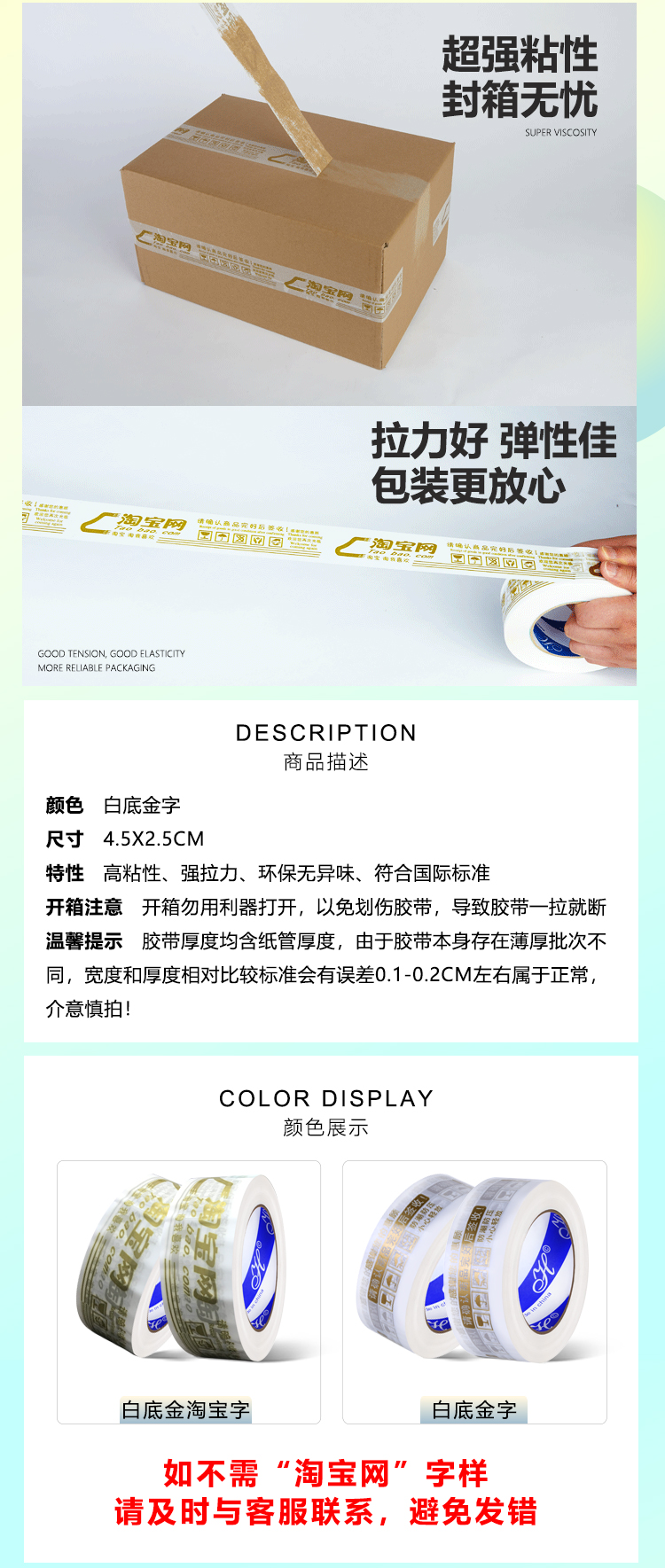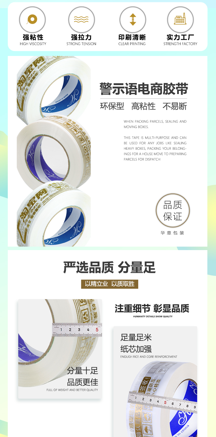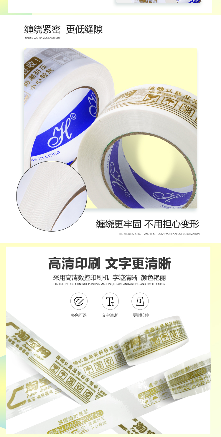 Предупредительная упаковочная лента Taobao прозрачная лента для запечатывания большая рулонная лента оптом и на заказ