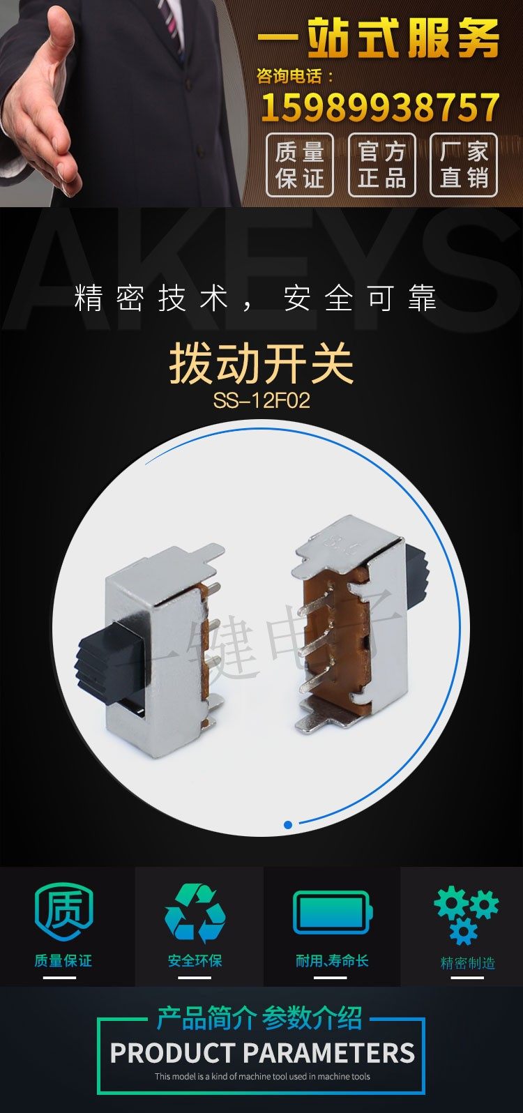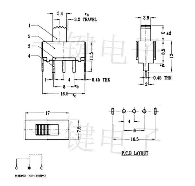 SS-12F02 (1P2T) переключатель игрушечный боковой с двумя положениями и различной высотой, один ряд с тремя контактами, вертикальный скользящий