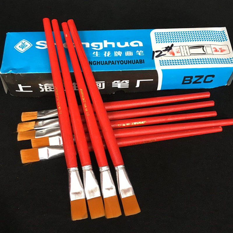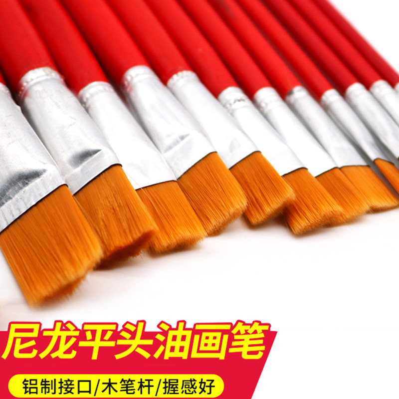 Набор из 20 масляных кистей с красной ручкой, кисти для краски, жёлтая плоская щетина, художественные кисти