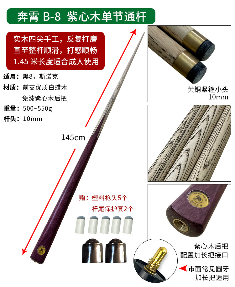 H-8 HONGJIE 1,2 м Утяжелённый короткий кий, H-7 HONGJIE 1,2 м Утяжелённый короткий кий, 50 см (в комплекте 5 защитных накладок для наконечника), 68 см (в комплекте 5 защитных накладок), 90 см (в комплекте 5 защитных накладок), 105 см (в комплекте 5 защитных накладок), 120 см одночастный (в комплекте 5 защитных накладок), 120 см разборный (две части, в комплекте 5 защитных накладок), B-7 BENXIAO 1,45 м необработанный цельный деревянный кий, B-8 BENXIAO 1,45 м кий из фиолетового дерева (с соединением)