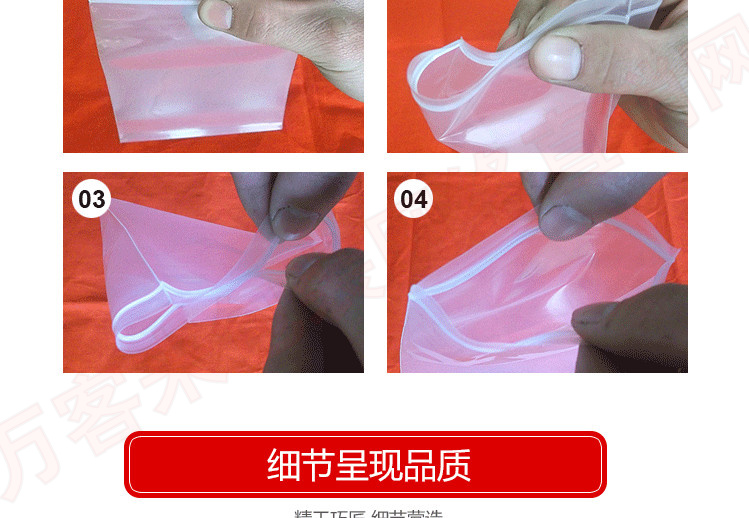 【品名】精品自封袋 【尺寸】宽9CM,长13CM 【厚度】双层8丝,1丝等于0.01毫米 【价格】1件2.3元/100个包装 【材质】环保优质PE 【颜色】白边即全透明 【点评】优质自封袋,可装食品。符合SGS通标标准技术认证机构检验检测的要求,产品各项指标-PASS。可靠品质,经得起考验。可适用包装各类要求严格苛刻的出口产品,及通用各行业的包装需要。欢迎订购。 |