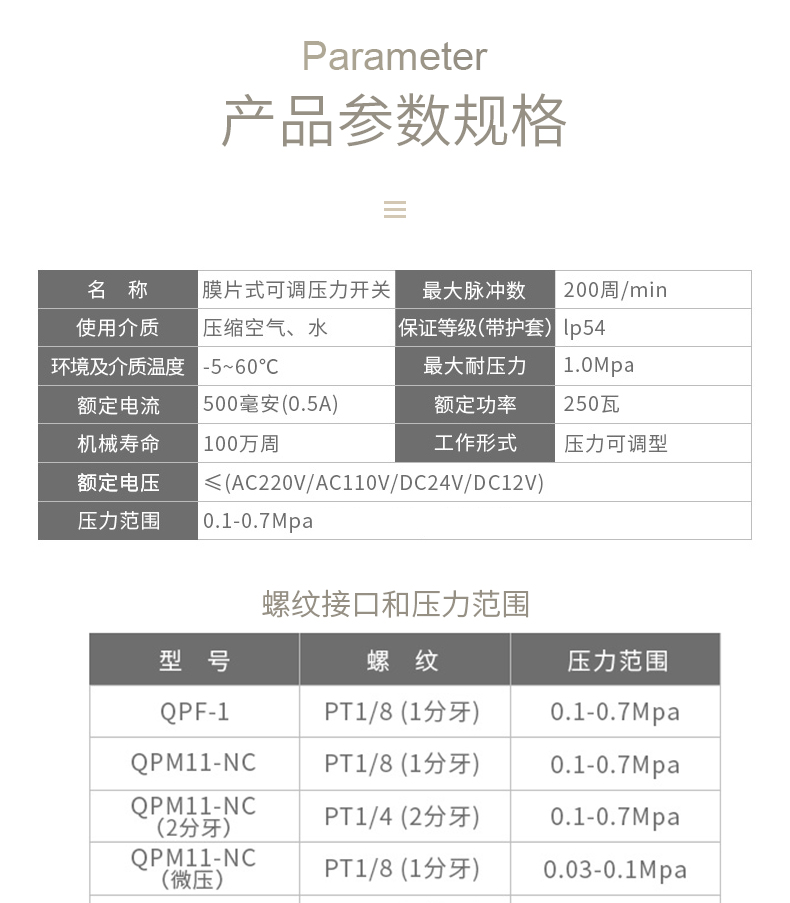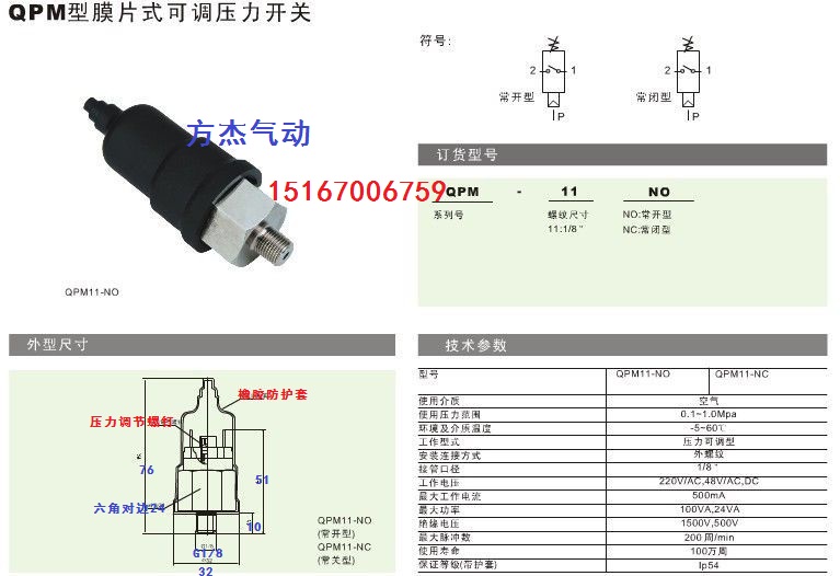 SNS Шэньчи QPM11-NO Пневматический QPM11-NC Регулируемый водяной давление QPF-1 Нормально открытый и нормально закрытый переключатель защиты давления