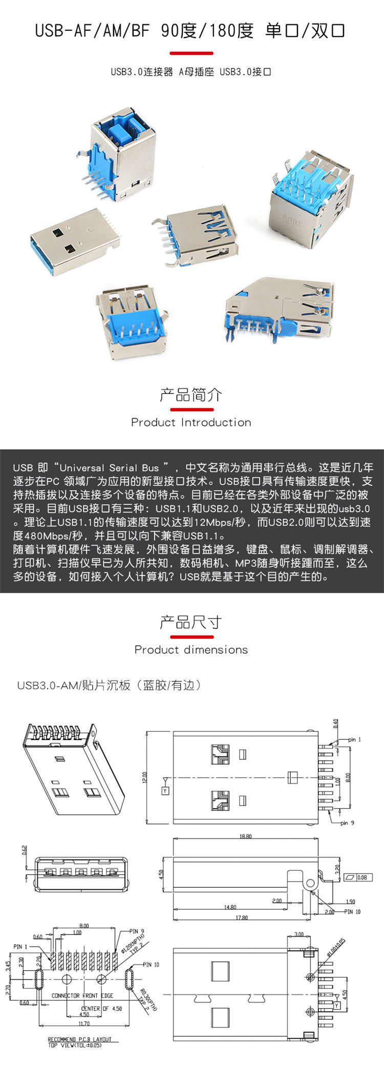 3.0 Высокоскоростной USB разъем гнездо штекер AM AF интерфейс 90 180 штекер квадратный порт соединитель для принтера